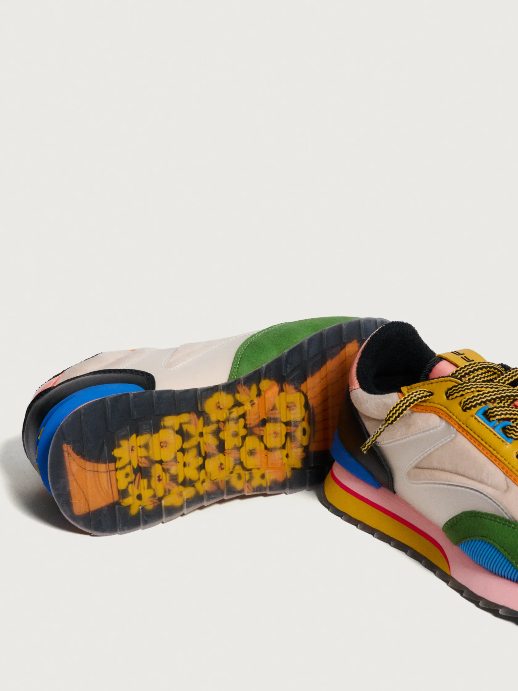 Kunst und Mode verschmelzen in der Kollektion ART X ABBEY LOSSING. Diese Sneakers spiegeln die Inspiration der Illustratorin wider und vereinen ihre Liebe zu Farben, Mustern und Formen. Die IRIS kombinieren Materialien wie Wildleder, Samt und Gummidetails. Das Farbenspiel, wie Nude, Tannengrün im Kontrast zu Schwarz und Rosa, macht sie zu einem Kunstwerk an sich. Sie haben dank ihrer Silhouette und der bedruckten Waffelsohle einen Retro-Touch. Außerdem sind sie ideal und bequem durch die Memory-Foam®-Innensohle. Diese Sneakers sind perfekt, um deinem Look eine einzigartige Note zu verleihen. Kombiniere sie mit einem einfarbigen Kleid oder Rock und hebe dich überall hervor.