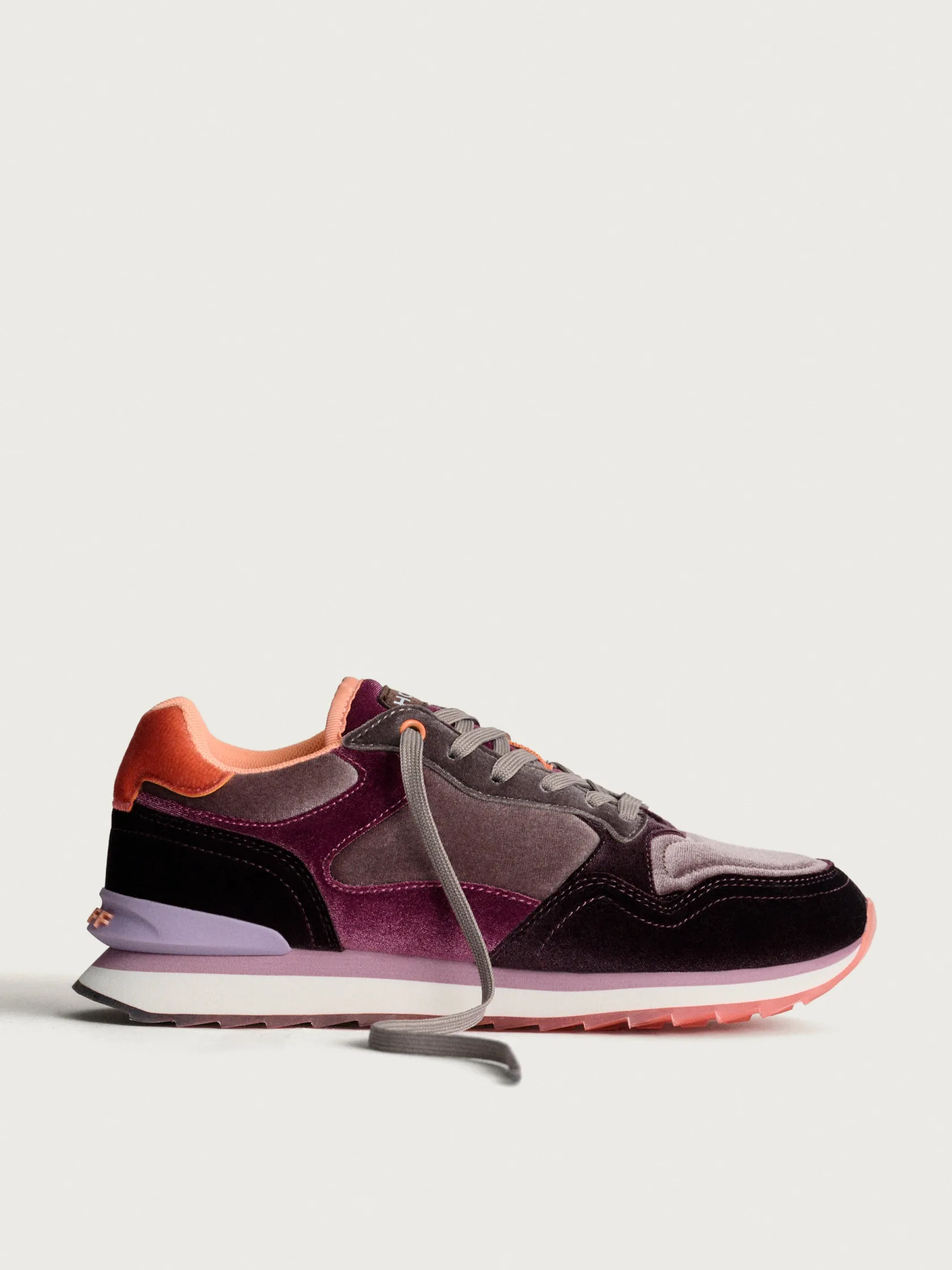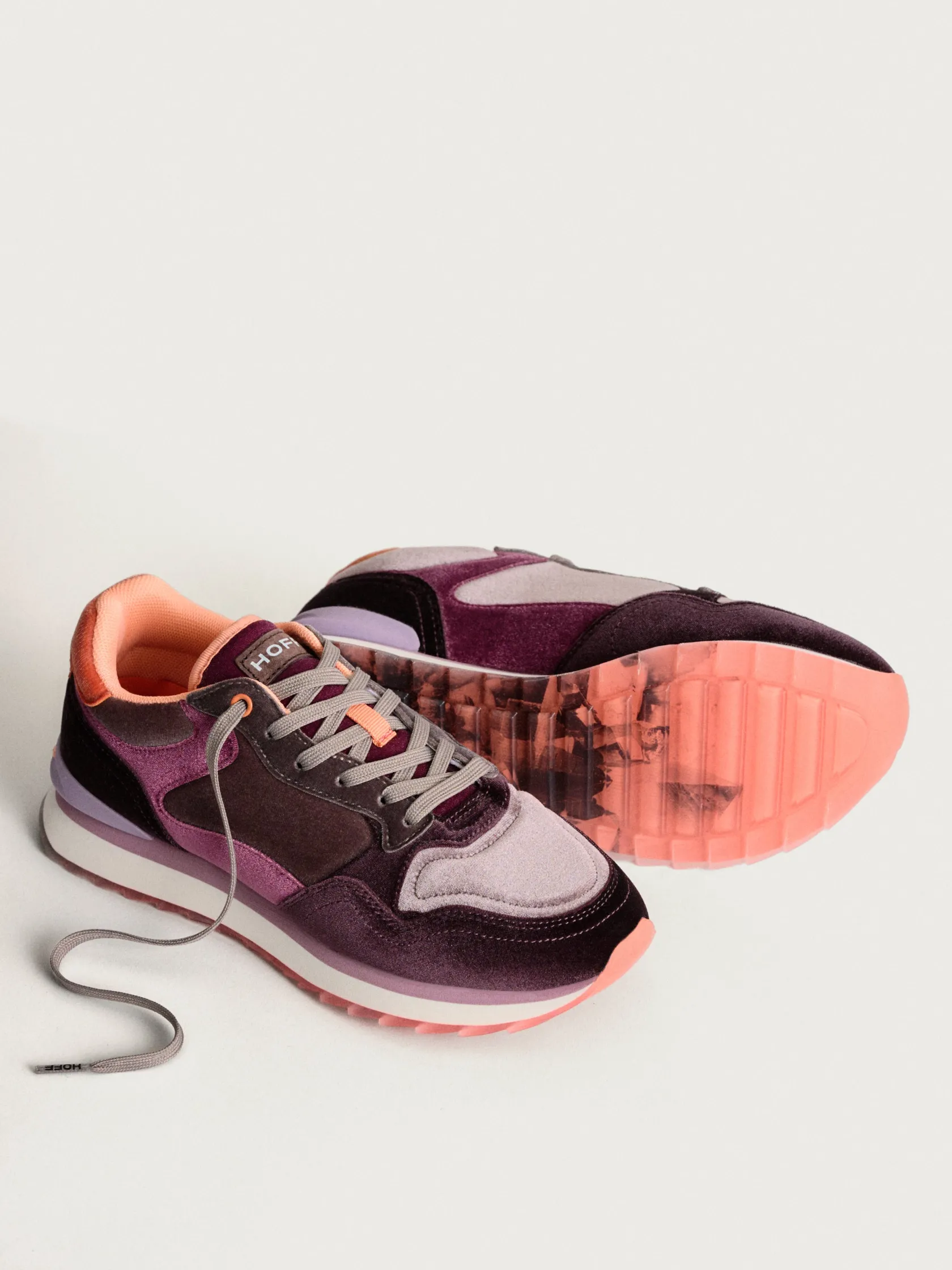 Die AMETHIST Sneaker besticht durch ihre elegante Silhouette, die mit Leder und Nylon-Details gezeichnet ist. Das herausragendste Merkmal dieses Modells ist der Samt, der es in Amethysttönen einhüllt und ein Gefühl von Luxus und Raffinesse vermittelt. Dieses Samtdetail hebt nicht nur die visuelle Ästhetik hervor, sondern verleiht auch eine weiche Haptik.
