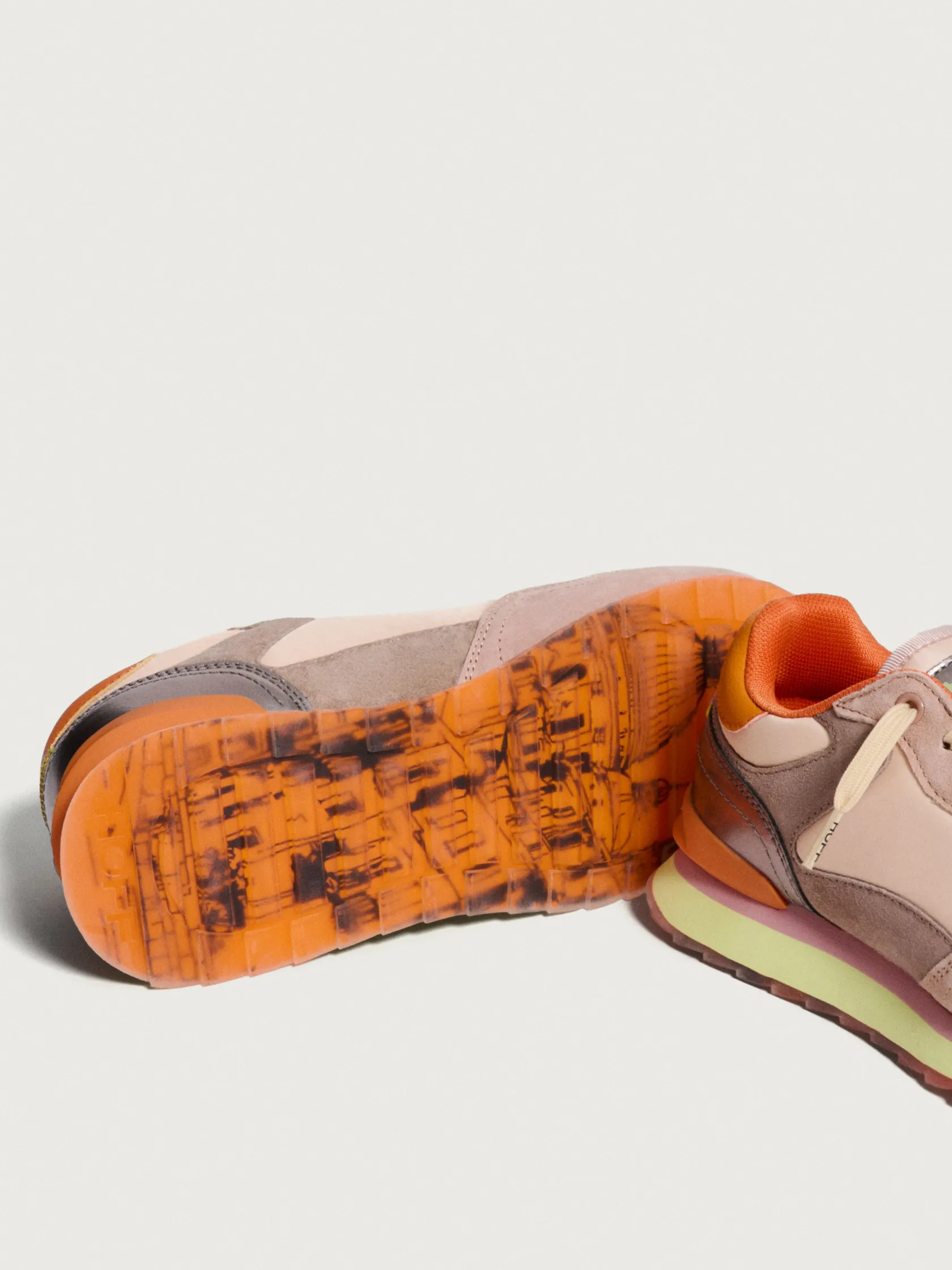 Die Cagliari-Sneaker sind originell und modern, mit einer Kombination aus Creme- und Khaki-Tönen, die mit leuchtenden Silber- und Orange-Details kontrastieren. Die Waffelsohle weist eine Linie in Rosa und Pastellgelb auf, die dem Design eine besondere Note verleiht. Diese Sneakers aus Leder, Nylon und einem Hauch Synthetik sind eine vielseitige Option für Ihren Stil. Die Memory Foam (R)-Einlegesohlentechnologie sorgt für ganztägigen Komfort, während das Textilfutter für Weichheit auf der Haut sorgt. Kombinieren Sie sie mit Jeans und einem Basic-T-Shirt für einen lässigen und modernen Look.