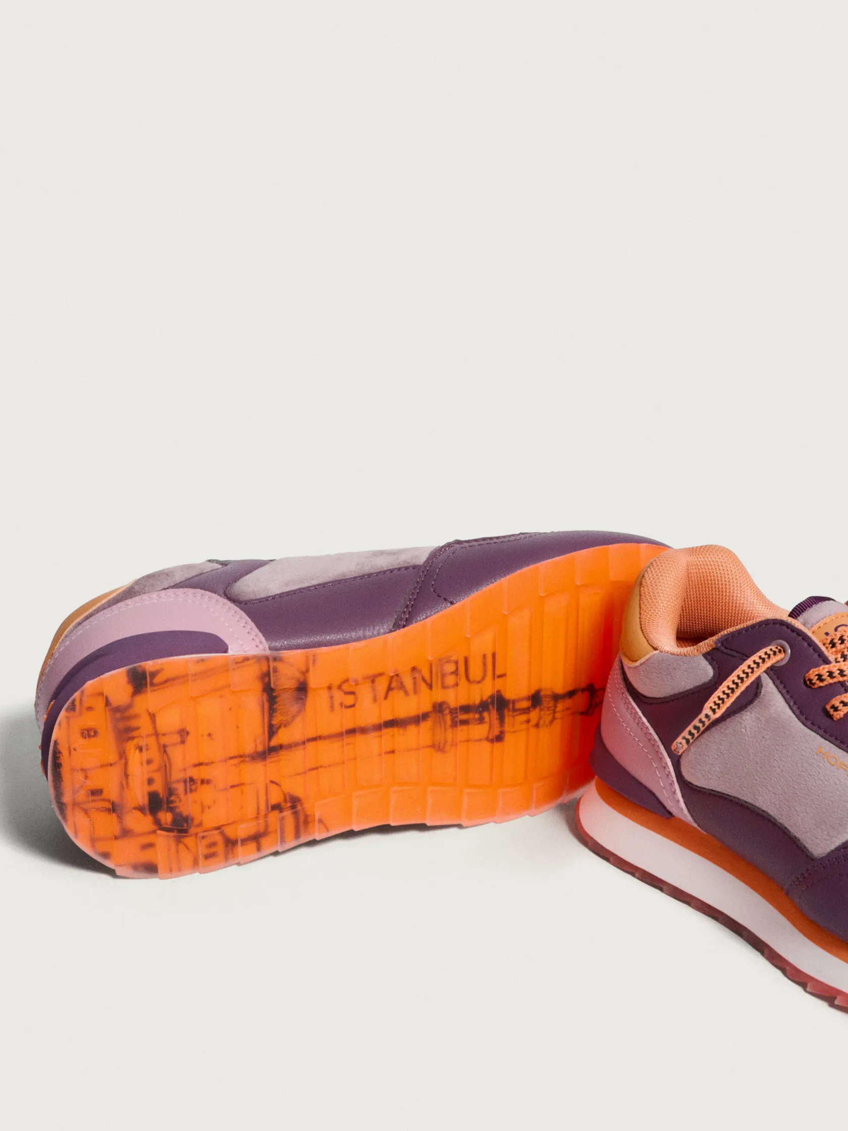 Die Istanbul-Sneaker zeichnen sich durch ihr einzigartiges und auffälliges Design aus, mit lila und fliederfarbenen Tönen, die mit Details aus Wildleder und orangefarbenen Akzenten an Gummi und Schnürsenkeln kontrastieren. Diese Sneaker sind ideal, um bei jeder Gelegenheit aufzufallen. Die Memory Foam®-Innensohlen-Technologie garantiert den ganzen Tag über Komfort. Hergestellt aus hochwertigen Materialien, einschließlich Synthetik und Nylon, bieten sie Stil und Qualität. Kombiniere sie mit Jeans und einem passenden T-Shirt für einen urbanen und modernen Look.