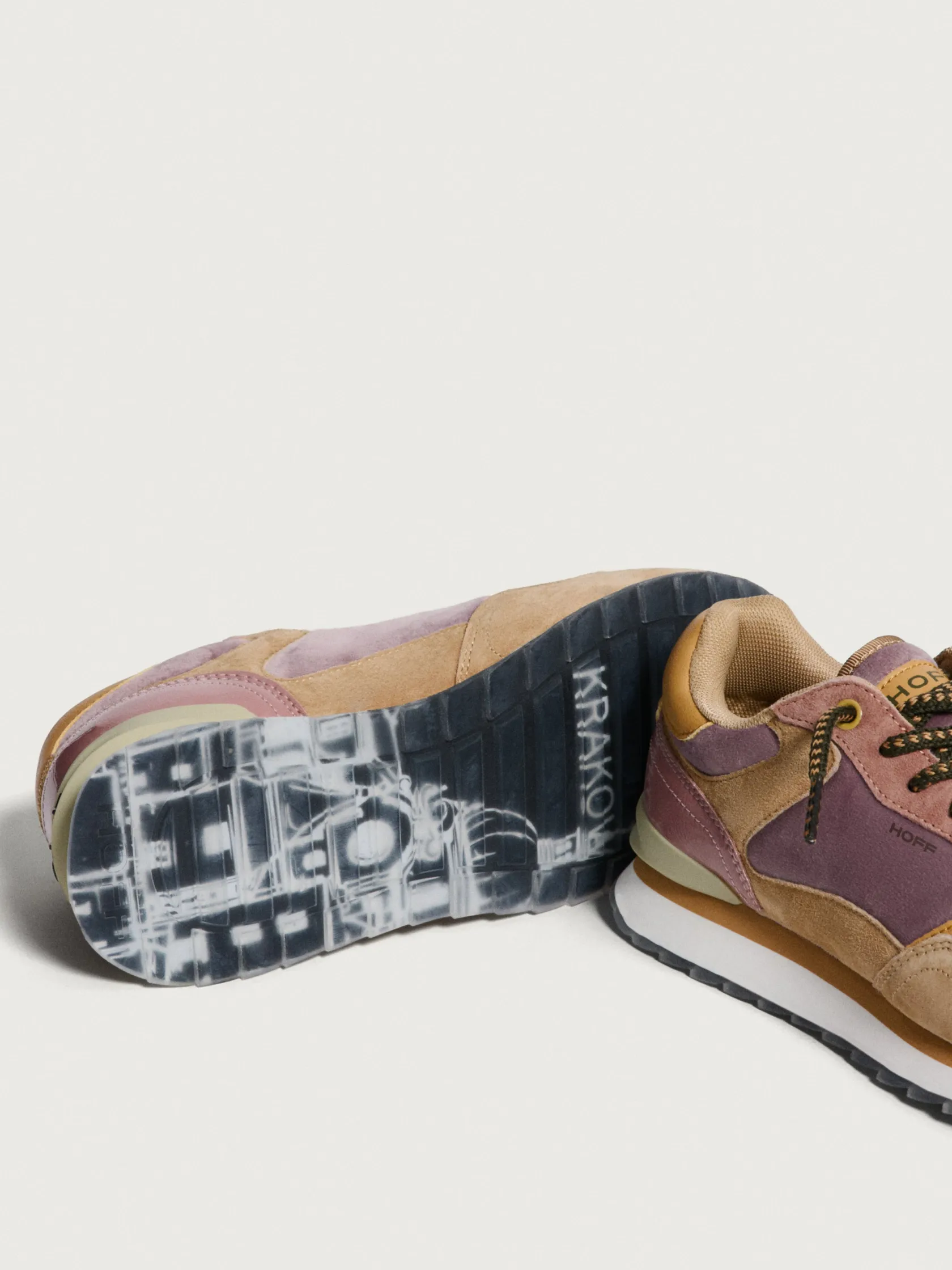 Die Krakow-Sneaker sind ein modernes Ausdruck von Stil und Farbe. Mit einer Kombination aus Lilatönen und Khaki sowie Details in glänzendem Altrosa zeichnen sich diese Schuhe durch ihre Originalität und Frische aus. Das kaffeefarbene Mesh an der Vorderseite verleiht zusätzliche Raffinesse. Die retro-inspirierte Waffelsohle. Ideal für diejenigen, die vielseitige Sneaker mit Persönlichkeit suchen – die perfekte Wahl, um bei jeder Gelegenheit hervorzustechen.