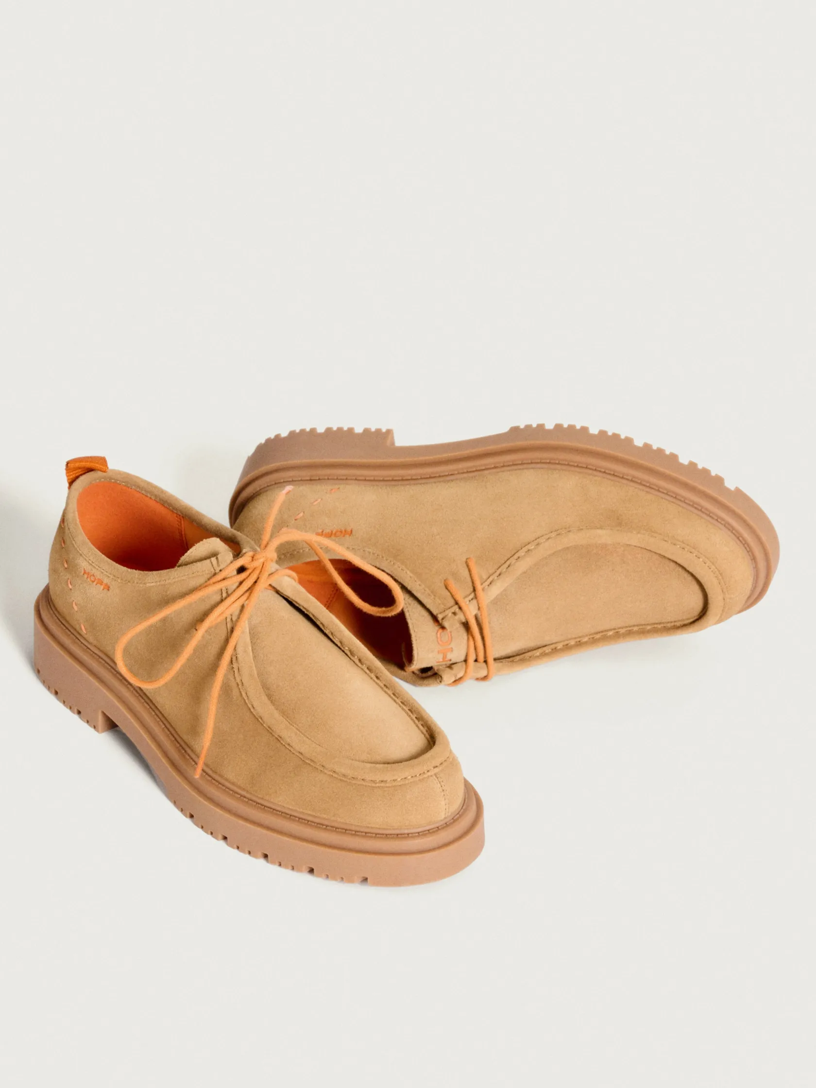 Der CONCERT CAMEL Mokassin vereint klassische Eleganz mit einem minimalistischen Design. Hergestellt aus braunem Wildleder und mit subtilen Textildetails versehen, besticht dieser Schuh durch Robustheit und Komfort, ohne dabei auf Stil zu verzichten. Mit einer klobigen Sohle bietet er eine moderne und praktische Wendung im traditionellen Mokassin-Stil, perfekt für jede Gelegenheit, vom täglichen Job bis zum Abendessen mit Freundinnen.