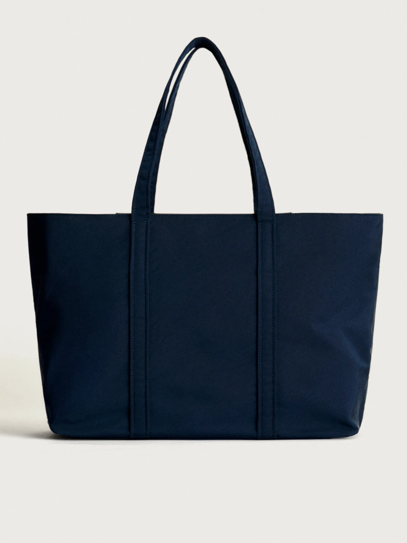 Der Shopper DAILY NAVY BLUE ist perfekt, wenn du viel mitnehmen musst und es stilvoll tun möchtest. Der marineblaue Farbton, der im Kontrast zur schwarzen Tasche mit geprägtem Logo steht, verleiht ihm eine elegante und subtile Note. Das gefütterte Innere verfügt über zwei praktische Taschen, eine davon mit Reißverschluss. Leicht und einfach zu verstauen dank des Materials, aber gleichzeitig geräumig genug, um sogar einen Laptop zu transportieren. Ein stilvoller Alltagsbegleiter, der deinen Look ergänzt, egal ob für die Arbeit, die Universität oder auf Reisen. Das ideale Accessoire für den Alltag.