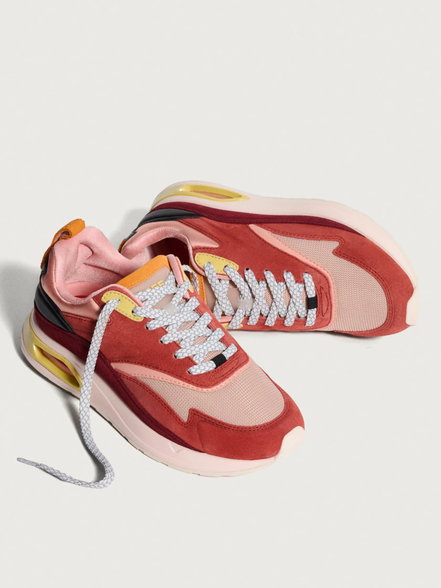 Die Maracaná-Sneaker sind eine Hommage an sportliche Eleganz mit einem Hauch von Retro. Hergestellt aus sorgfältig ausgewähltem Leder und Veloursleder, bieten sie eine außergewöhnliche Texturvielfalt, während das Gewebe für perfekten Komfort beim Gehen und einen idealen Look sorgt. Ihre Farbpalette kombiniert Erdtöne mit lebhaften Farben und macht diese Sneaker zu einem Must-have in jeder Garderobe. Die sichtbare Luftkammer in der Sohle ist nicht nur ein modisches Statement, sondern bietet auch eine überlegene Dämpfung. Perfekt, um deinen Jeans einen Hauch von Stil zu verleihen.