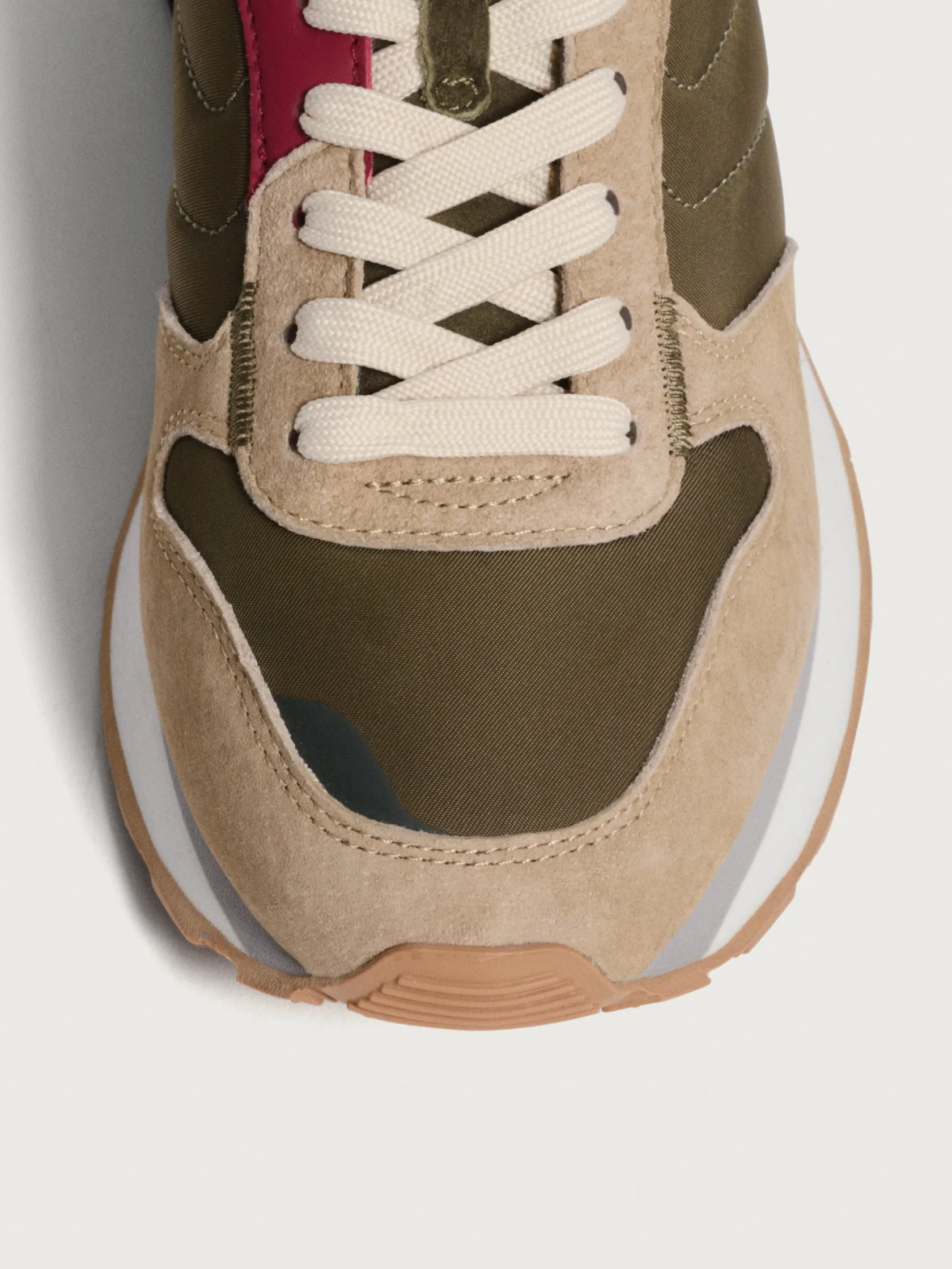 Die SARDIS von Track & Field zeichnen sich durch Stil und Funktionalität aus. Mit einer Farbpalette, die die Schlichtheit von Olivgrün mit der Wärme von Beige und dem Charakter von Bordeaux kombiniert, sind diese Sneakers das perfekte Accessoire. Das Veloursleder und das Gewebe schaffen eine einzigartige Kombination. Die Memory-Foam®-Einlegesohle garantiert Komfort bei jedem Schritt, ohne den Stil zu beeinträchtigen. Perfekt für einen lässigen Stil, kombiniere sie mit Chinohosen und einem Blazer für einen Tag im Büro oder mit Jeans und einem T-Shirt für einen entspannten Wochenendlook.