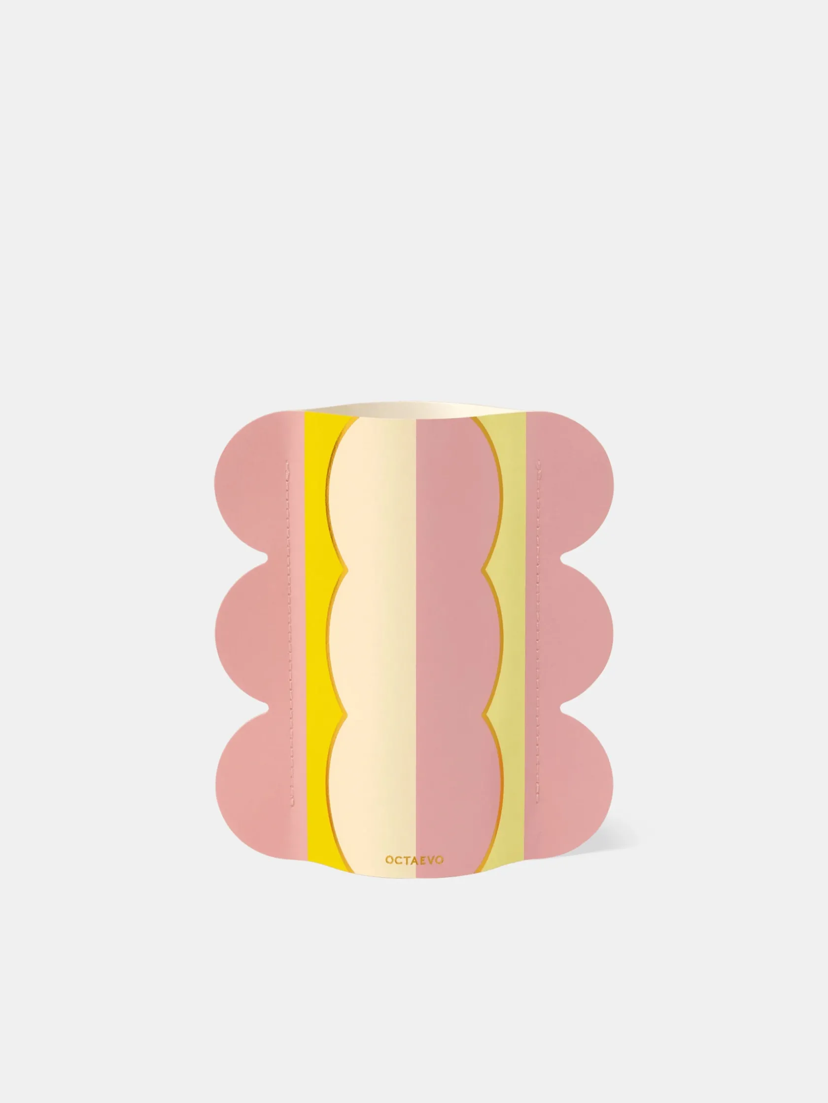 Die Papiervase Riviera Wave ist authentisch und farbenfroh. Ihre Töne und ihre Form machen sie zu einem Stück, das in jedem Raum auffällt. Ein Designobjekt mit Charakter, einzigartig in Funktion und Ausdruck, eine Hommage an die 1960er Jahre, eines unserer liebsten Design-Jahrzehnte.