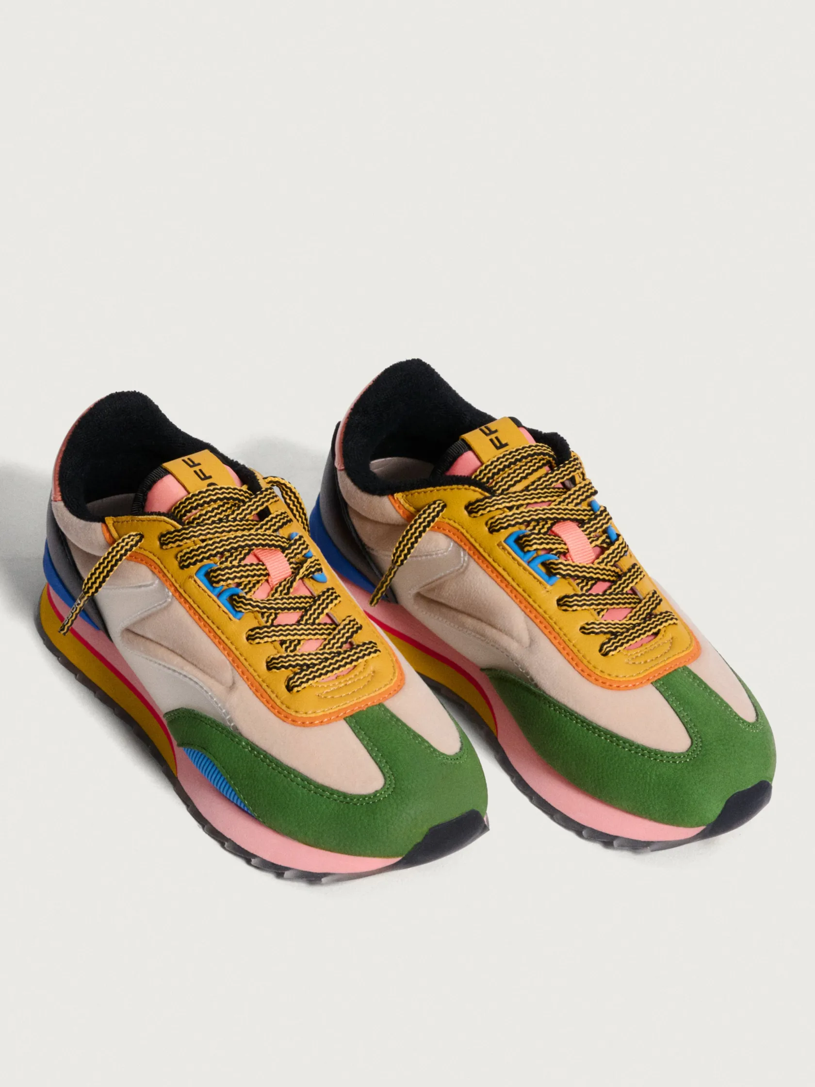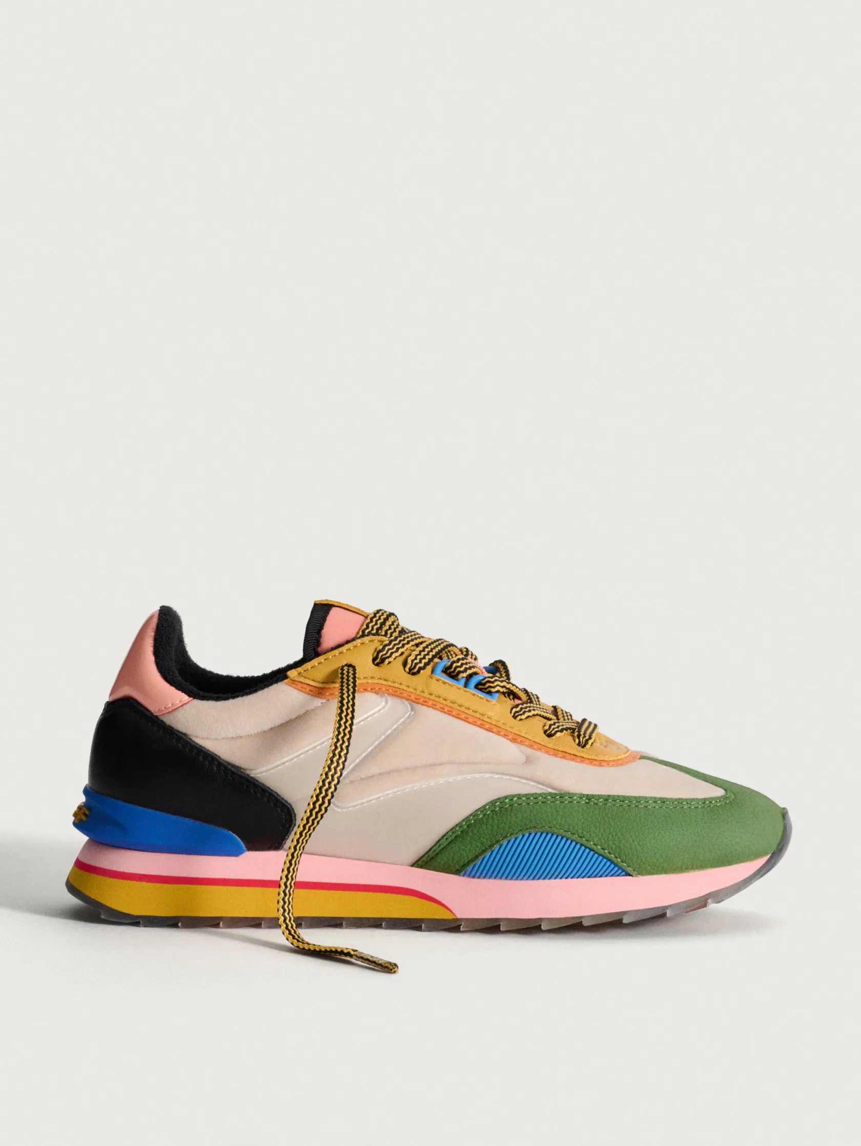 Kunst und Mode verschmelzen in der Kollektion ART X ABBEY LOSSING. Diese Sneakers spiegeln die Inspiration der Illustratorin wider und vereinen ihre Liebe zu Farben, Mustern und Formen. Die IRIS kombinieren Materialien wie Wildleder, Samt und Gummidetails. Das Farbenspiel, wie Nude, Tannengrün im Kontrast zu Schwarz und Rosa, macht sie zu einem Kunstwerk an sich. Sie haben dank ihrer Silhouette und der bedruckten Waffelsohle einen Retro-Touch. Außerdem sind sie ideal und bequem durch die Memory-Foam®-Innensohle. Diese Sneakers sind perfekt, um deinem Look eine einzigartige Note zu verleihen. Kombiniere sie mit einem einfarbigen Kleid oder Rock und hebe dich überall hervor.
