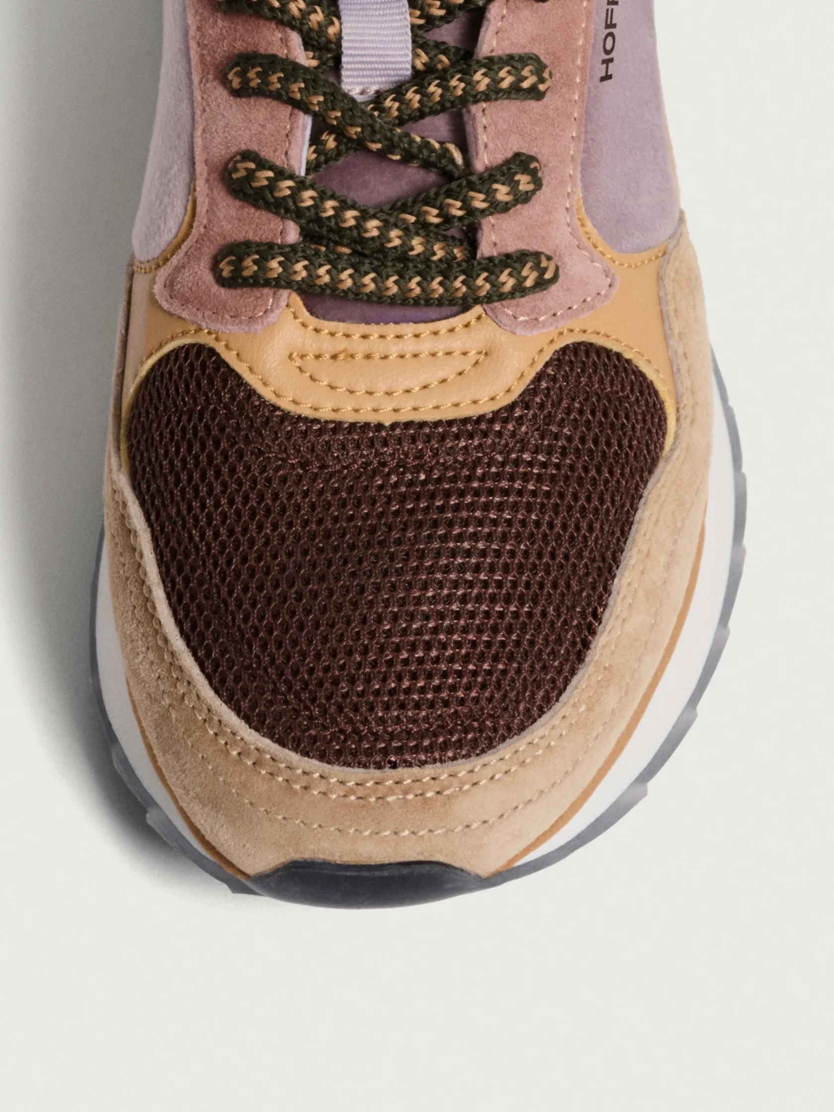 Die Krakow-Sneaker sind ein modernes Ausdruck von Stil und Farbe. Mit einer Kombination aus Lilatönen und Khaki sowie Details in glänzendem Altrosa zeichnen sich diese Schuhe durch ihre Originalität und Frische aus. Das kaffeefarbene Mesh an der Vorderseite verleiht zusätzliche Raffinesse. Die retro-inspirierte Waffelsohle. Ideal für diejenigen, die vielseitige Sneaker mit Persönlichkeit suchen – die perfekte Wahl, um bei jeder Gelegenheit hervorzustechen.