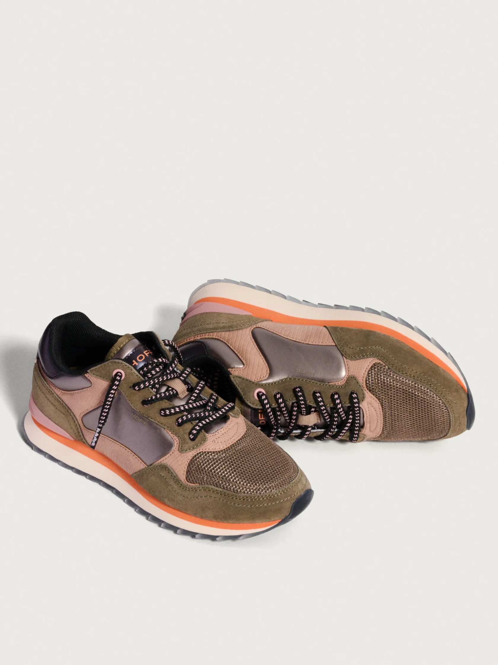 Diese Sneakers, inspiriert von Ljubljana, zeichnen sich durch ihr einzigartiges und modernes Design aus. Das Wildleder in Kieferngrün, das khakifarbene Schlangenmuster und die silbernen Akzente, zusammen mit einer orangenen Linie an der Sohle, machen sie wirklich besonders. Mit einer Kombination aus Leder, Nylon und synthetischem Material sind sie eine Mischung aus Stil und Komfort. Die Memory Foam®-Einlegesohle bietet außergewöhnlichen Komfort für den ganzen Tag. Kombiniere sie mit einem Oversize-T-Shirt für einen modernen und anspruchsvollen Look.