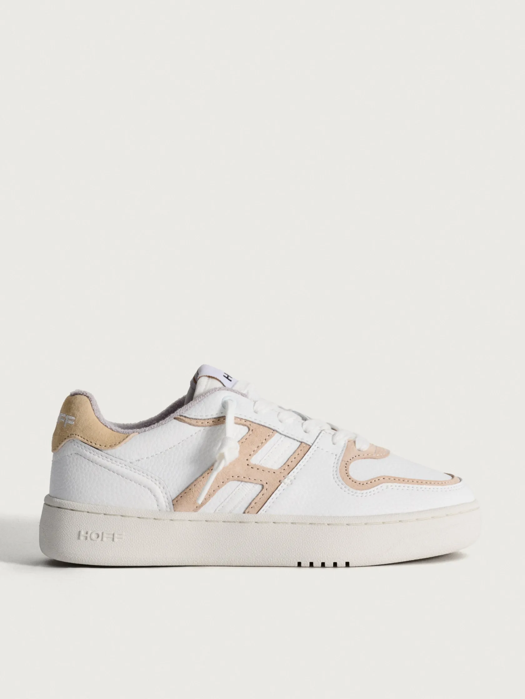 Inspiriert von der Saison CONVENT GARDEN, verbindet dieses Modell Funktionalität und Modernität in seinem sportlichen Design. Sein Bamba-Skate-Stil zeichnet sich durch einfarbige Lederdetails aus, die im Kontrast zum Camel-Ton an den Seiten und vorne stehen. Dank der Einlegesohle aus Memory Foam sind die Schuhe sehr bequem zu laufen. Die Laufsohle aus recyceltem Gummi imitiert die Rauheit des Straßenbelags der Saison und ist mit marmorierten Details versehen. Das gestickte Logo auf der Rückseite ist das Erkennungszeichen der Marke. Perfekt für die Vielseitigkeit, die es erlaubt, sie zu jedem Look zu tragen, sei es ein Rock oder eine Jeans.Stil: Trainer im Bamba-Stil.Höhe der Sohle: 3,5 cm.