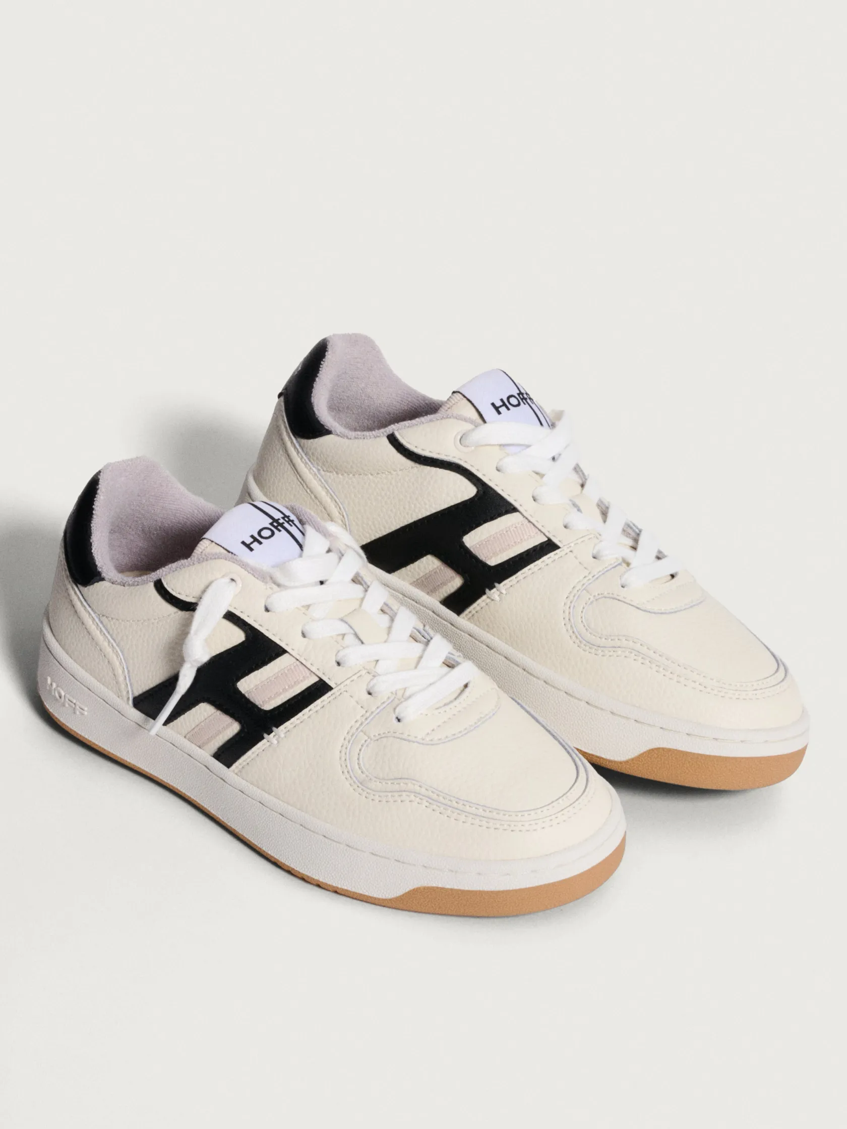 Inspiriert von der Saison GRAND CENTRAL, verbindet dieses Modell Funktionalität und Modernität in seinem sportlichen Design. Sein Bamba-Skate-Stil zeichnet sich durch einfarbige Lederdetails aus, die im Kontrast zu dem schwarzen Ton an den Seiten stehen. Dank der Memory-Foam-Einlegesohle sind diese Schuhe für ein bequemes Gehen konzipiert. Die Laufsohle aus recyceltem Gummi imitiert die Rauheit des Straßenbelags der Saison und ist mit rosa und marmorierten Details versehen. Das gestickte Logo auf der Rückseite ist das Erkennungszeichen der Marke. Perfekt für ihre Vielseitigkeit, denn sie können zu jedem Look getragen werden, egal ob zu einem Rock oder einer Jeans.Stil: Trainer im Bamba-Stil.Höhe der Sohle: 3,5 cm.