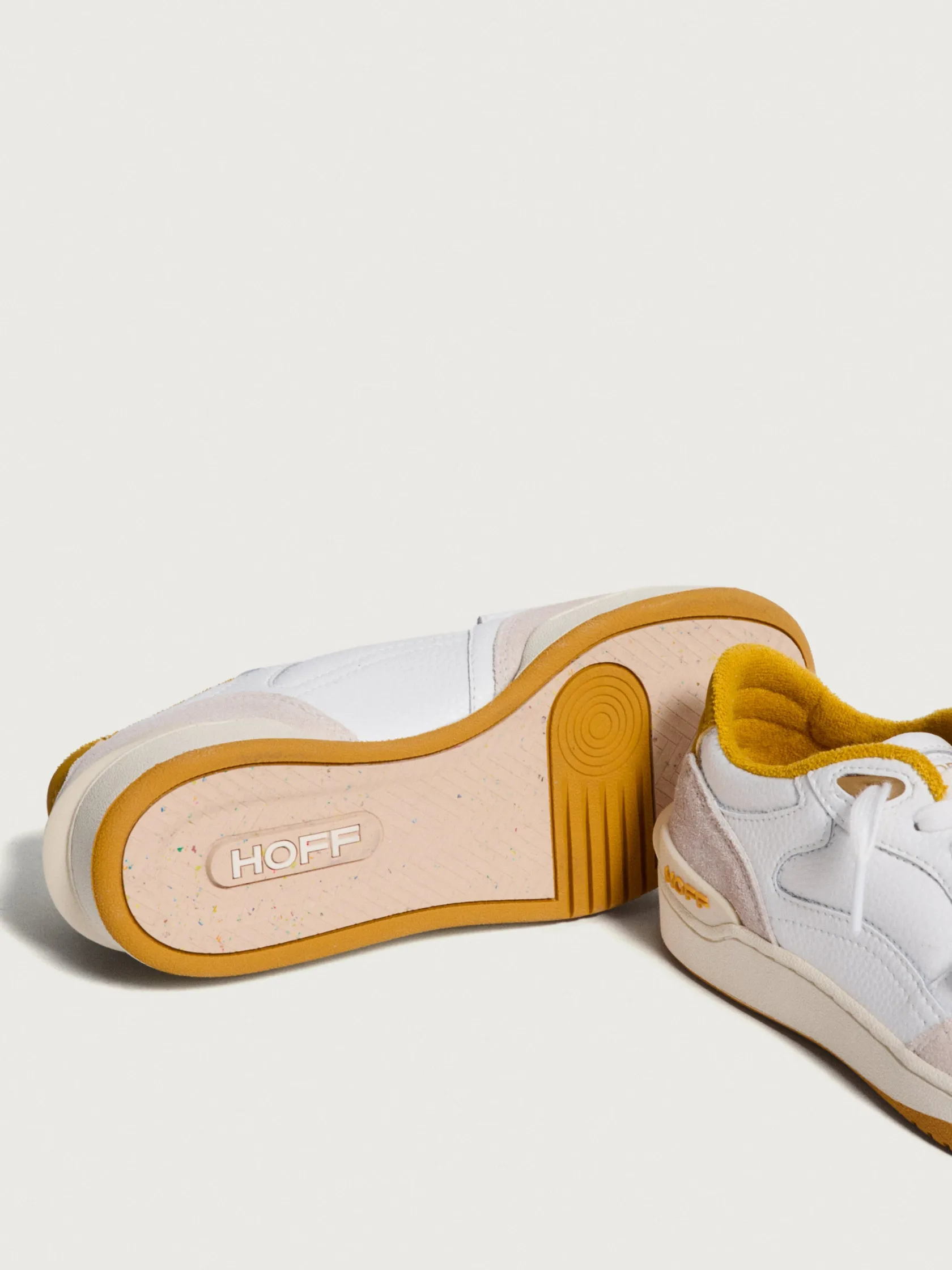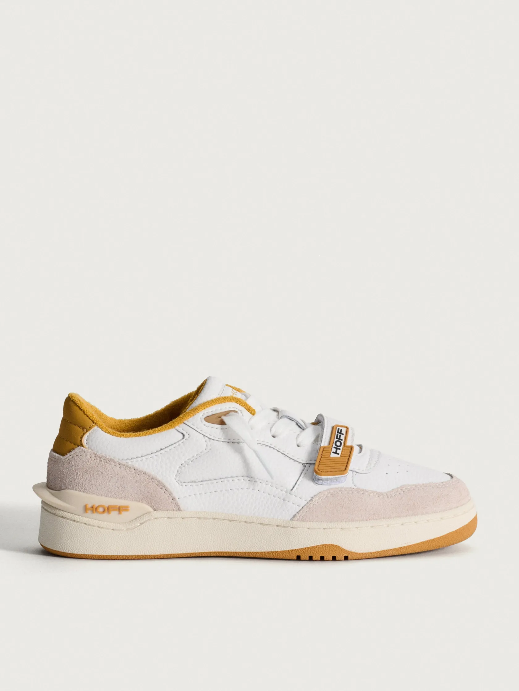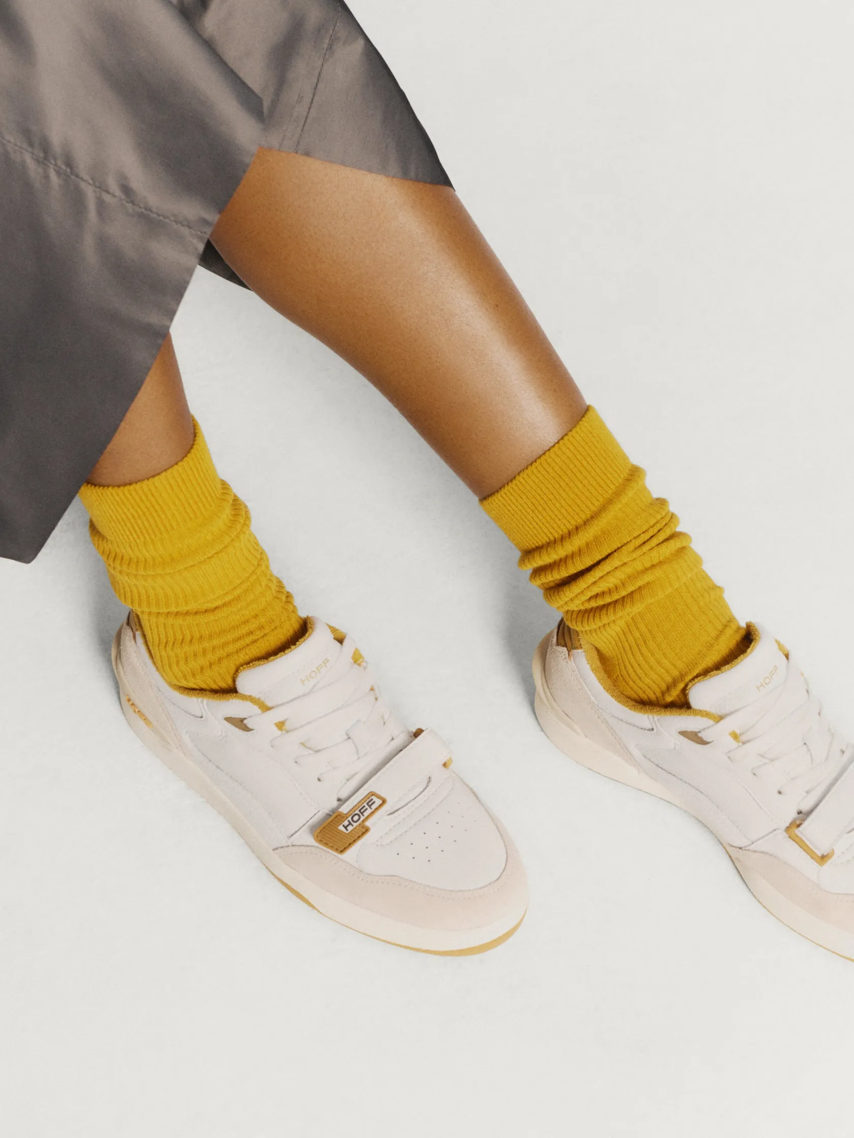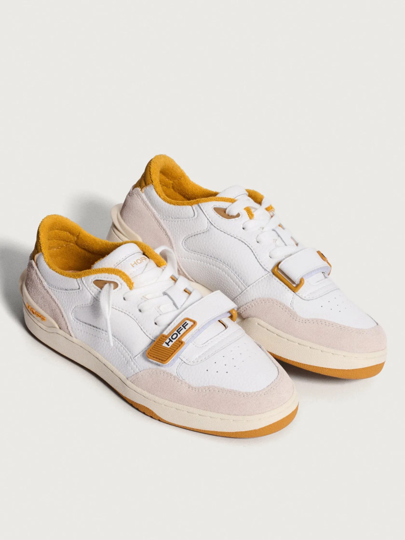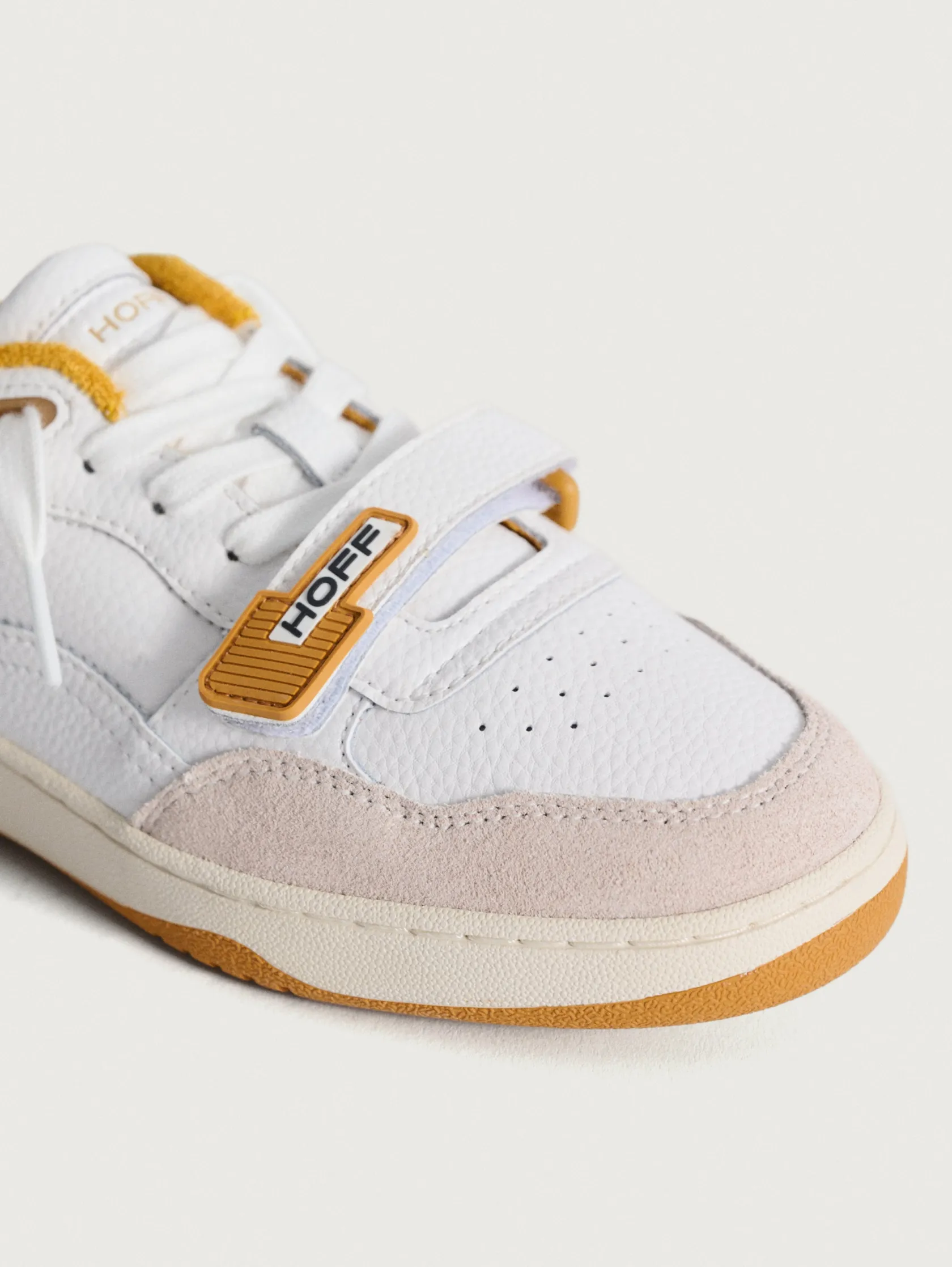 Der WALKMAN-Sneaker verkörpert die Essenz der Retrowave-Kollektion mit einem Design, das den klassischen Sportschuhen der 80er Jahre huldigt. Präsentiert in einer sanften Farbpalette und mit Texturen, die sich gleichzeitig kontrastieren und ergänzen, wie die dezente Gummieinlage. Details wie der Klettverschluss und die exquisite Auswahl an Leder, das harmonisch mit ausgewählten Stoffen kombiniert wird, ergeben ein Design mit einer unverwechselbaren Persönlichkeit und einem unverkennbaren Charakter. Die Struktur spielt mit Formen und Linien, um eine visuelle Harmonie zu schaffen, die an die Retro-Ära erinnert, während die solide Gummisohle, die präzise gestaltet wurde, ein ideales Gleichgewicht zwischen Erbe und Funktionalität bietet. Perfekt kombinierbar mit abgetragenen Jeans oder einem Plisseerock.