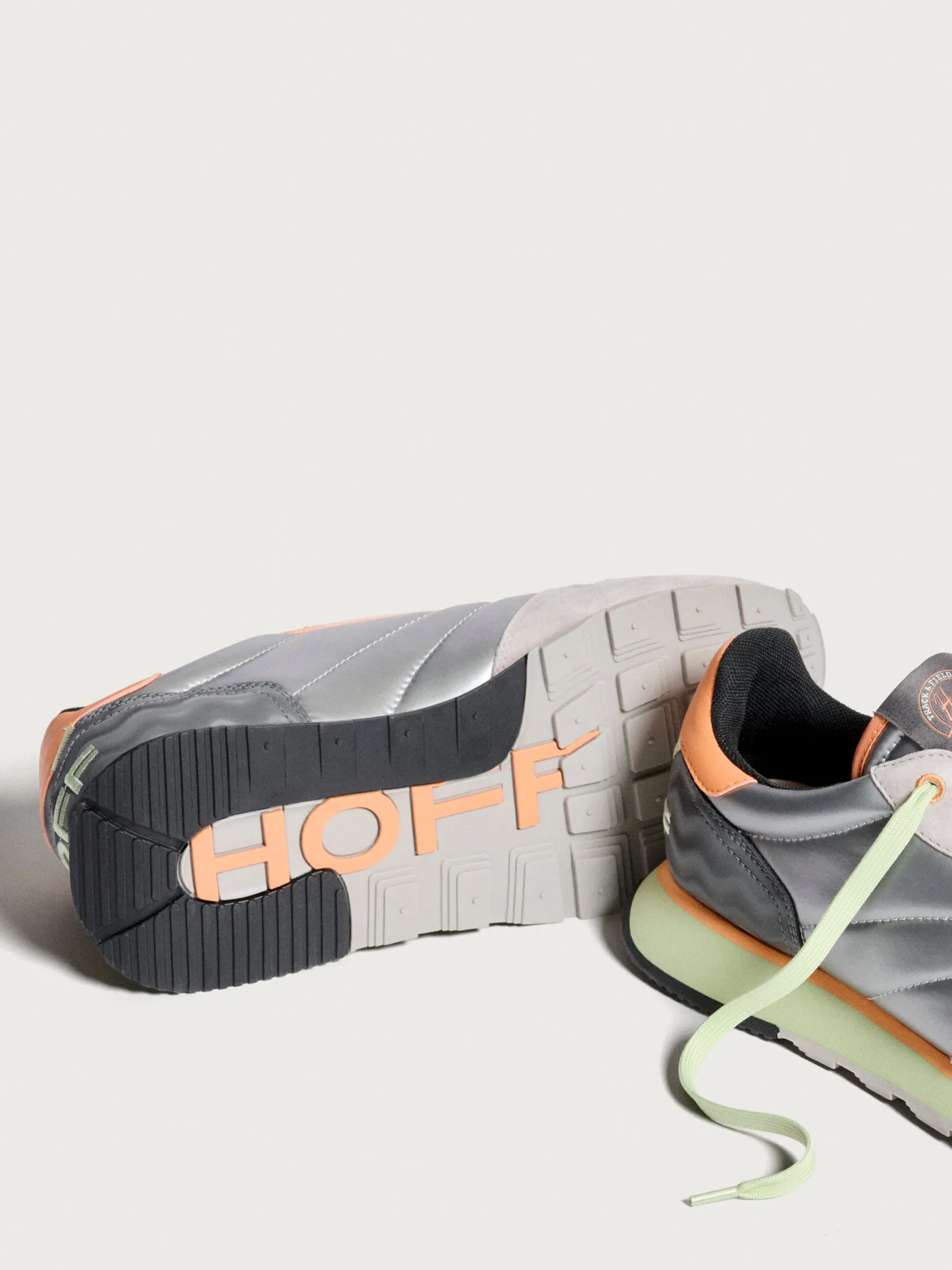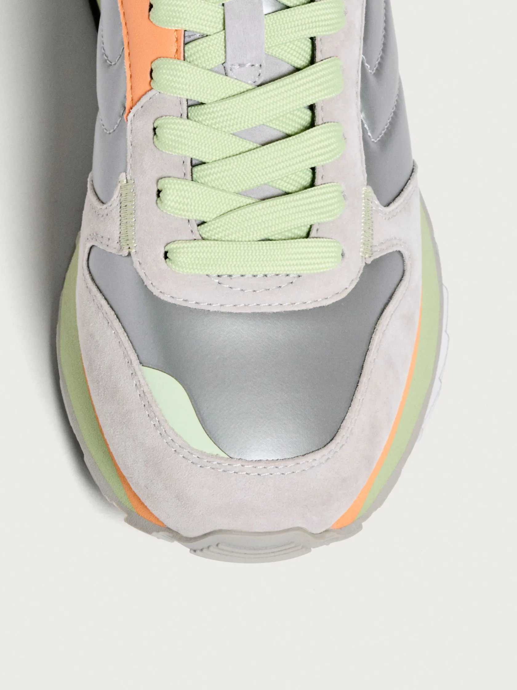 Sie spiegeln die Essenz von Retro-Sneakern mit einem modernen Ansatz wider. Weiches Leder und Stoff verschmelzen zu einer dynamischen Ästhetik, die durch schillernde Details verstärkt wird. Ein Hauch von kräftigem Orange auf hell- und dunkelglänzendem Grau verleiht einen authentischen und vielseitigen Look. Die Memory-Foam(R)-Einlegesohle bietet adaptiven Komfort, während die Außensohle eine solide Grundlage für die Erkundung der Stadt bietet. Tragen Sie sie mit einem T-Shirt und einem Midirock für einen lässigen Look.