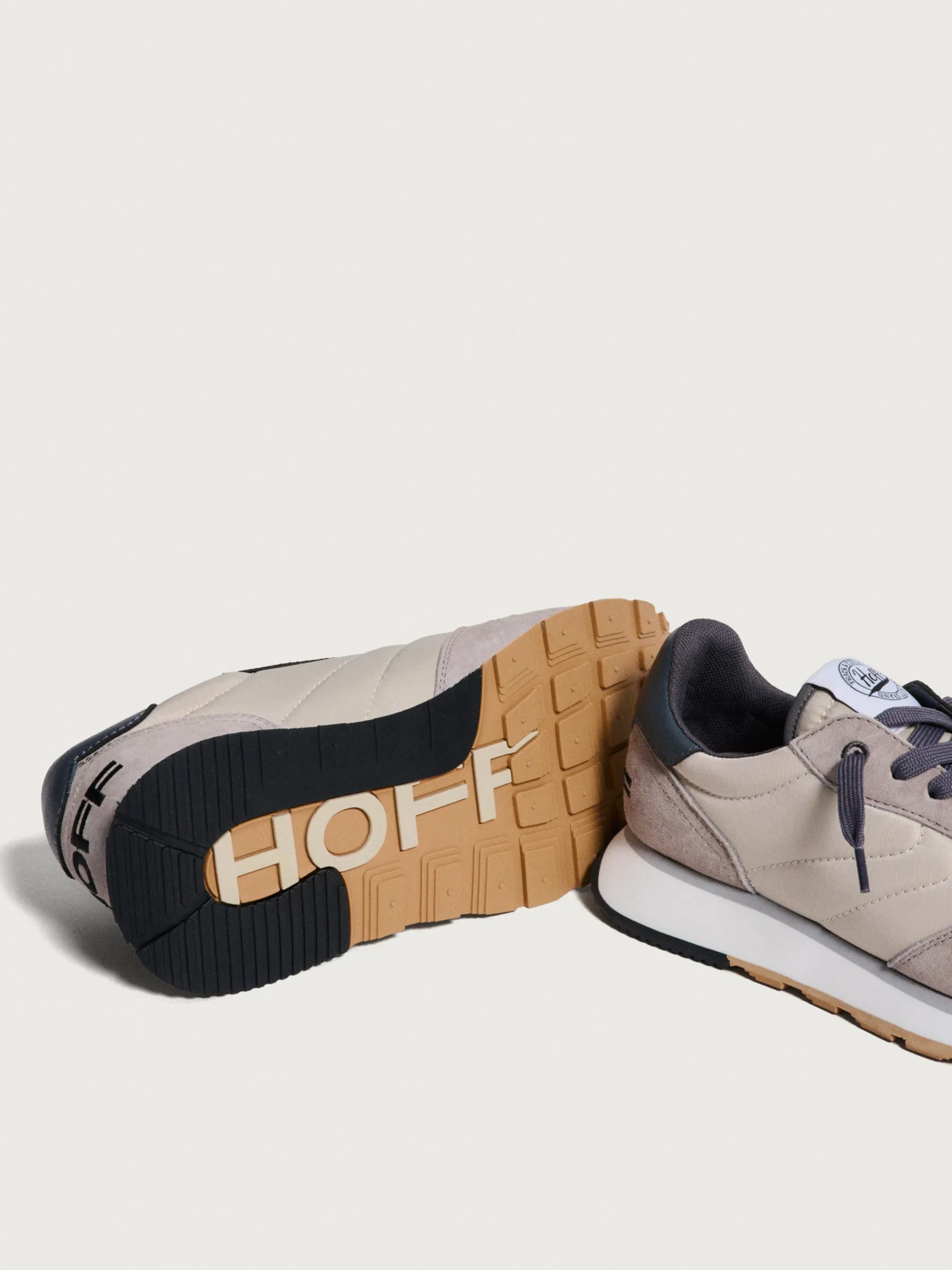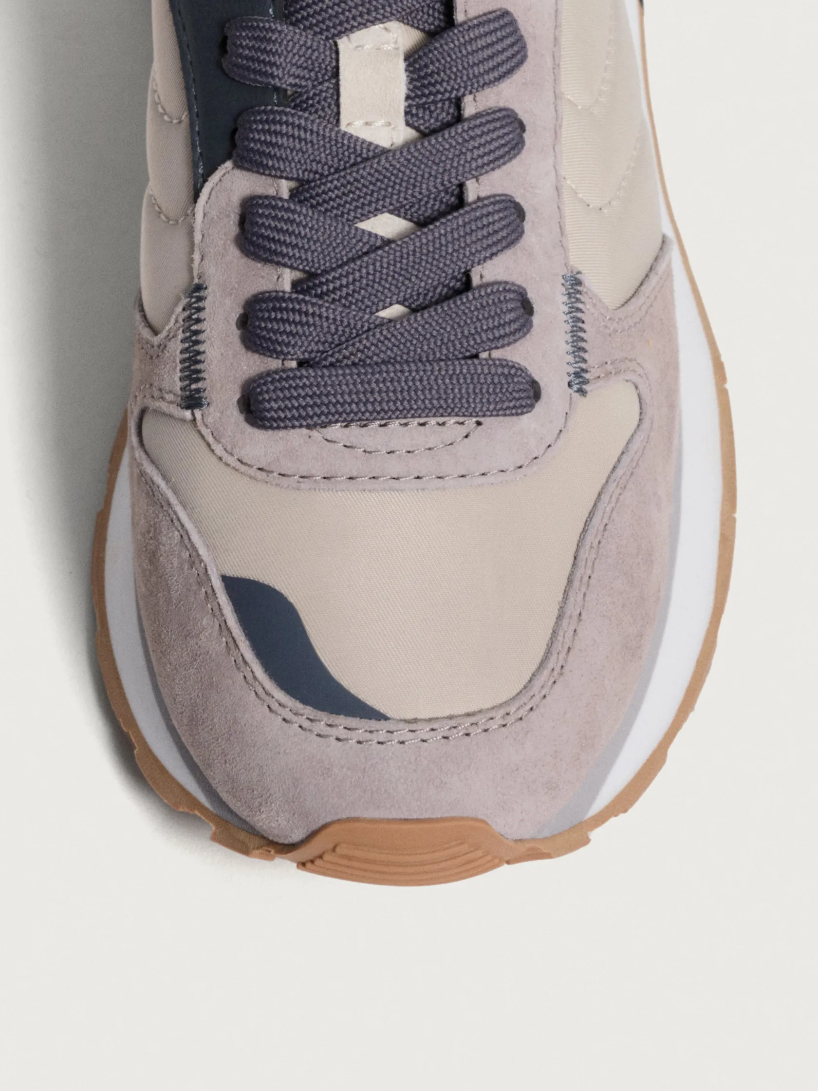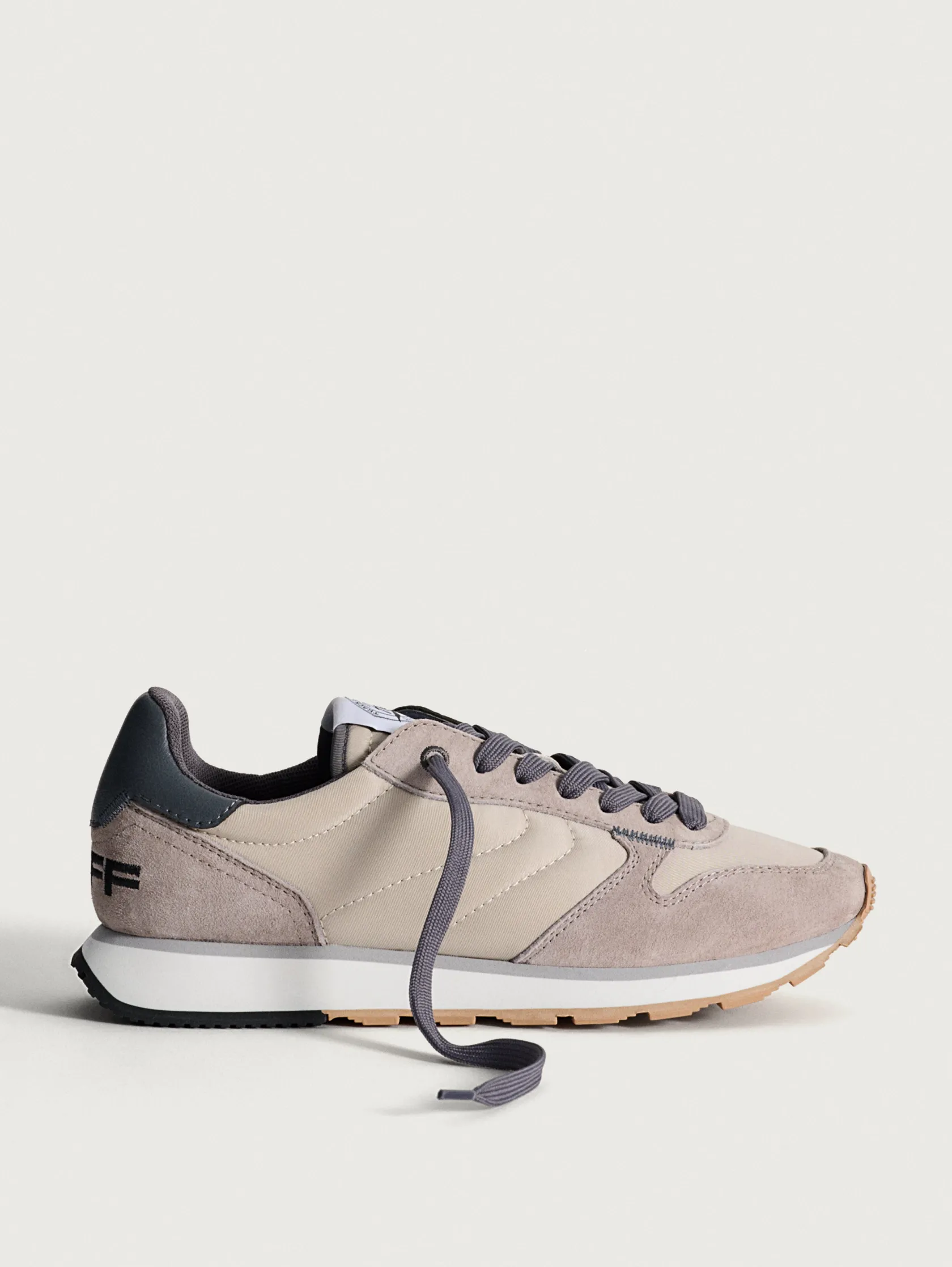 Es ist eine Hommage an klassische Leichtathletik-Silhouetten mit modernem Flair. Die Harmonie zwischen weichem Leder und strapazierfähigem Stoff wird durch die Details verstärkt, alles in einer neutralen und eleganten Farbpalette. Die flexible und widerstandsfähige Sohle eignet sich perfekt für die Anpassung an den Alltag. Diese Sneaker passen mühelos zu lässiger Wochenendkleidung oder sind die perfekte Ergänzung zu einem formelleren Outfit.